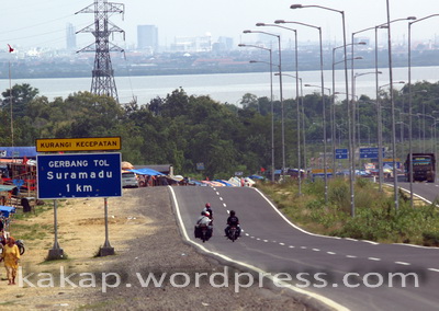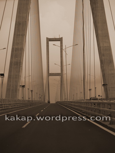 Sebelum ada jembatan Suramadu yang sepuluh Juni besok genap setahun itu, pernah dulu beberapa kali sekedar iseng menyeberangi selat Madura dengan menaiki ferry, tapi tak pernah cukup ke jauh dalamnya. Demikian pula setelah jembatan Suramadu itu diresmikan, beberapa kali pula aku mengantarkan permintaan beberapa kawan dan sanak kerabat untuk sekedar melewati jembatan terpanjang di Indonesia yang membentang sepanjang 5,438 kilometer itu, tanpa mencoba mengenal ebih dekat lagi.