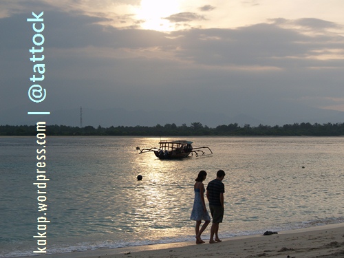 Terbangun pada jelang fajar. Suasana temaram menyapa kesadaran yang belum sepenuhnya terjaga. Ah iya, ini kan di Gili Trawangan, bukan Surabaya. Dilanjutkan tidurnya, sambil memeluk istrinya yang baru dinikahi seminggu yang lalu. Senyum lepas pada wajah terlelap di sampingnya membuatnya segera ikut kembali terlelap.