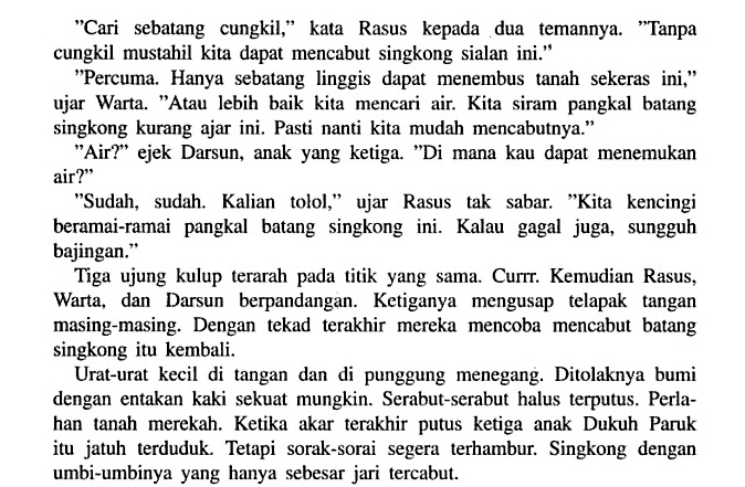 Tetapi yang utama, Ahmad Tohari piawai mendongeng bagaimana kemiskinan itu sedemikian dekat bagi pembacanya. Coba saja lihat beberapa frase di awal kisah sebagai berikut: