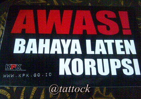 Saya suka sticker itu.  Idealnya sih ditempelkan di kendaraan, sebagai iklan berjalan bagi gerakan anti korupsi. Tapi atas kualitas pembuatannya, saya tak yakin sticker itu bakal awet di tengah panas dan air hujan, dan jadilah saya memilih menyimpannya di bawah kaca tipis di atas meja kerja saya daripada menempelkannya, supaya tetap awet sebagai pengingat bagi saya pribadi.