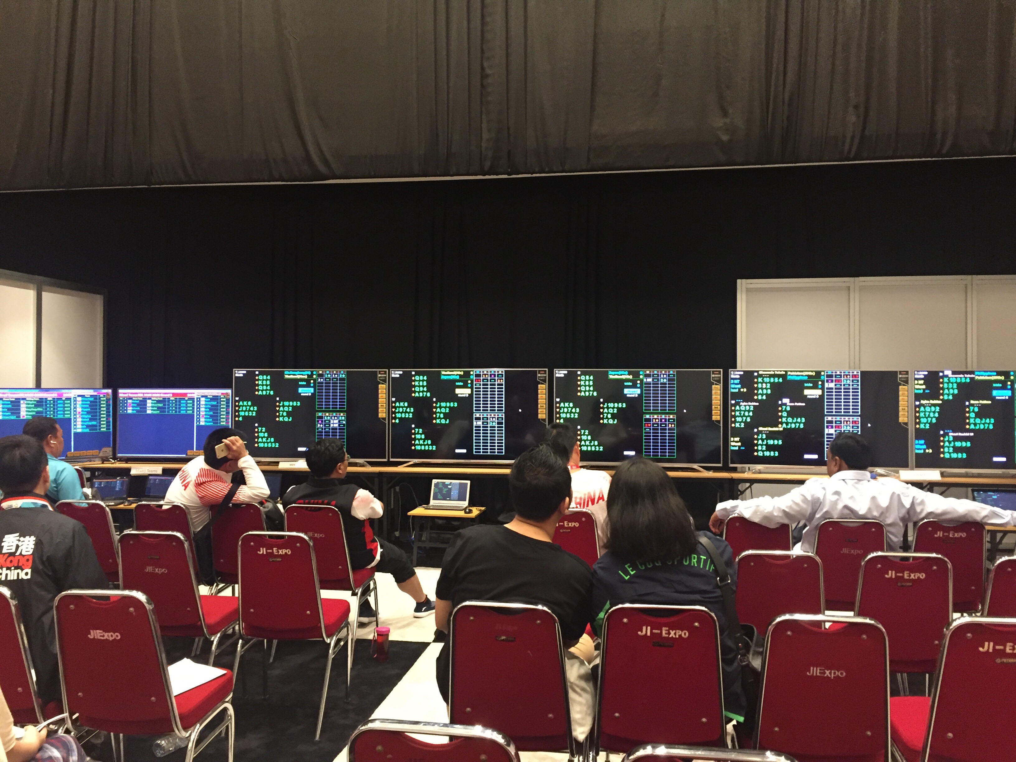 “Saya tadi (22/8) datang ke sini (Jakarta International Expo Kemayoran) mau menonton wushu. Tapi kata petugas tiket sudah habis dan diarahkan untuk menonton bridge saja. Saya masuk ke sini, eh, di layar cuma angka-angka saja.”