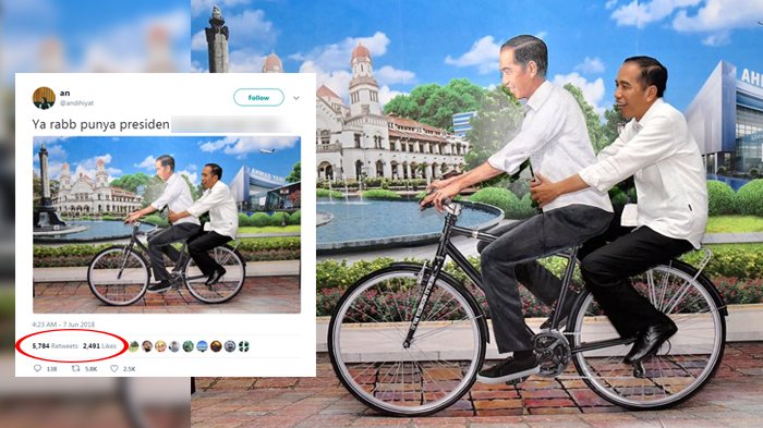 Lucu sih emang fotonya. Mirip-mirip dengan foto Presiden Jokowi membonceng dirinya sendiri yang viral setahun yang lalu.