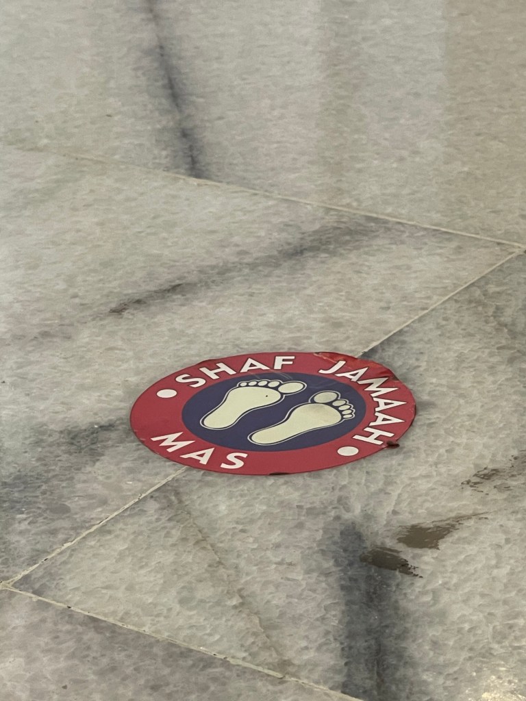 Sandal/sepatu masih harus dibawa masing-masing jamaah. Tidak diperbolehkan masuk buat mereka yang tidak bermasker, tetapi takmir menyediakan pula masker gratis buat jamaah yang memerlukan. Menyediakan hand sanitizer di pintu masuk dan kotak amal. Mengukur suhu jamaah sebelum masuk masjid. Serta menjaga jarak jamaah baik saat khotib naik ke mimbar dan saat sholat Jumat dilaksanakan.