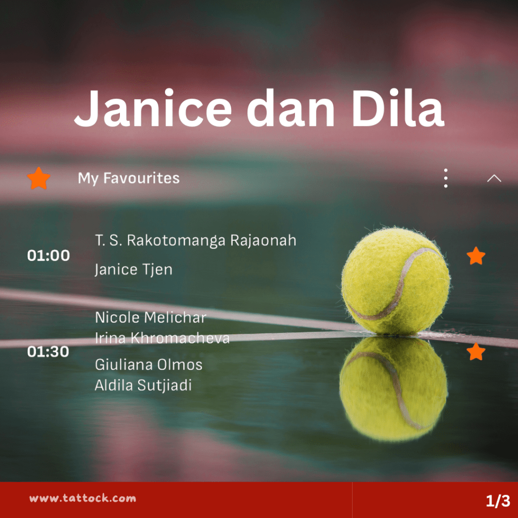 Janice Tjen dan Aldila Sutjiadi. Bagi yang belum mengenal keduanya, inilah petenis terbaik Indonesia saat ini. Berbeda usia 7 tahun, kedua gadis Taurus ini pernah berpasangan menyumbangkan medali perunggu Asian Games Hangzhou 2023 di nomer ganda putri. Malam ini, keduanya tampil di babak final WTA Tour, Dila di final ganda putri WTA500 Guadalajara sedangkan Janice di WTA250 Sao Paulo.