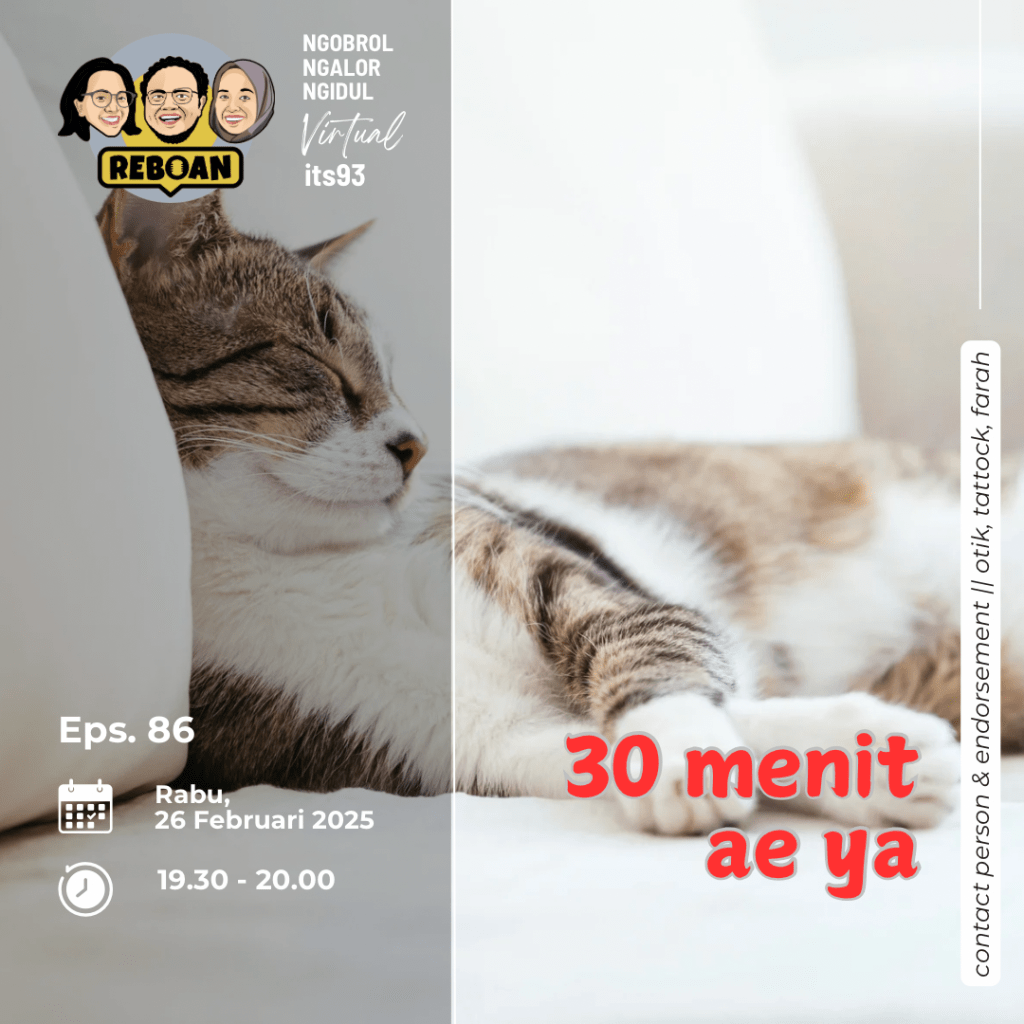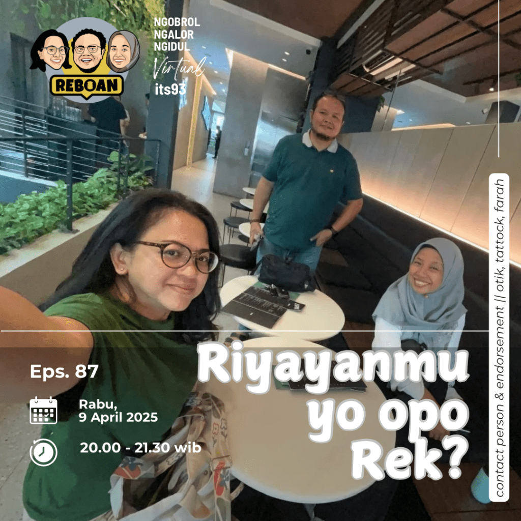Jadilah Reboan yang diselenggarakan secara online tiap Rabu malam adalah ruang pertemanan baru tapi lama. Hingga akhirnya Reboan ITS93 berakhir di episode ke-99.