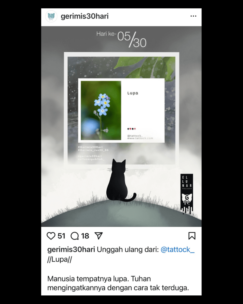 Note: tulisan ini pernah diposting di instagram @tattock_ untuk Gerimis 30 Hari, Gerakan Rutin Menulis 30 Hari pada tanggal 6 Juni 2025. Alhamdulillah, tulisan ini disukai penyelenggara dan di repost oleh akun penyelenggara.